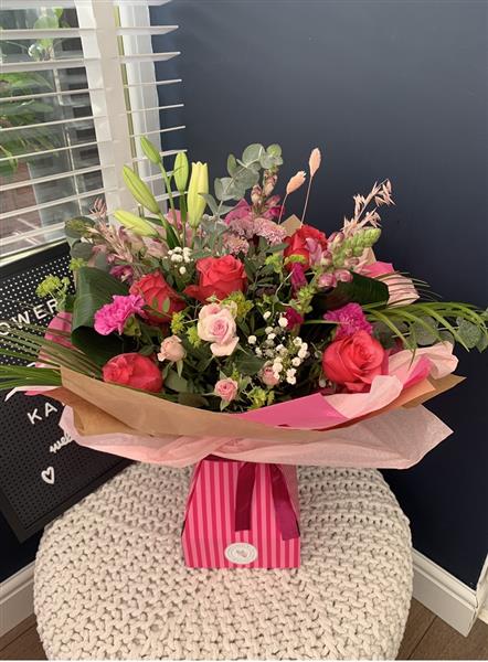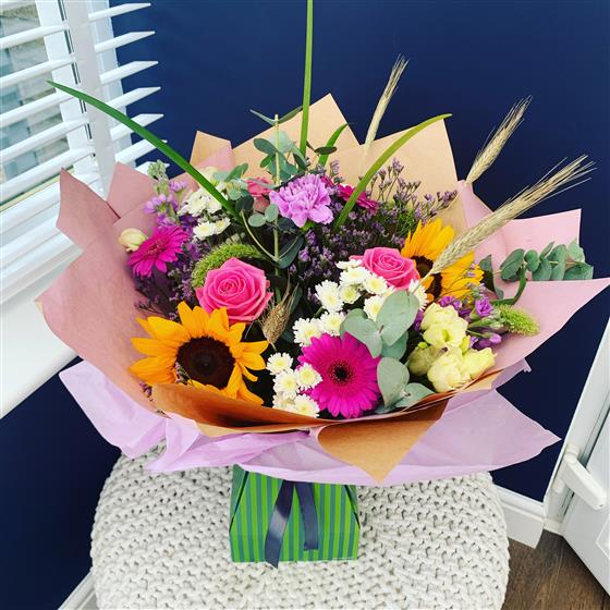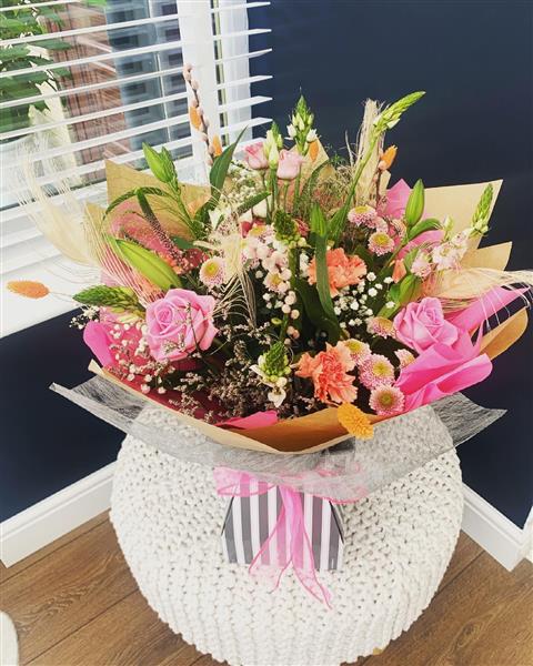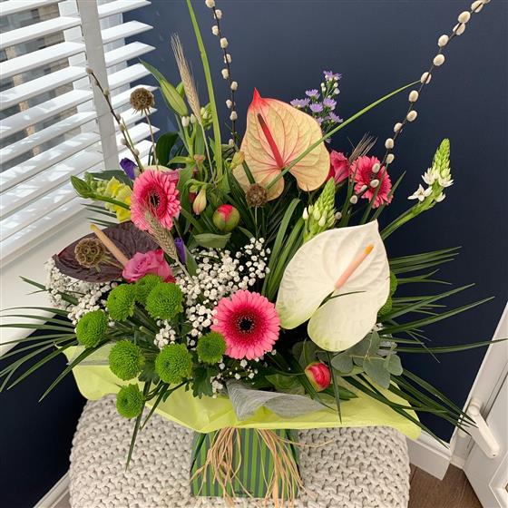 This fresh flower bouquet we have created with our own loving hands showcases natural charm in every stem. Order bouquets and arrangements online with ease, telephone or visit our shop in person if you are local, where every flower is crafted with attention to detail.